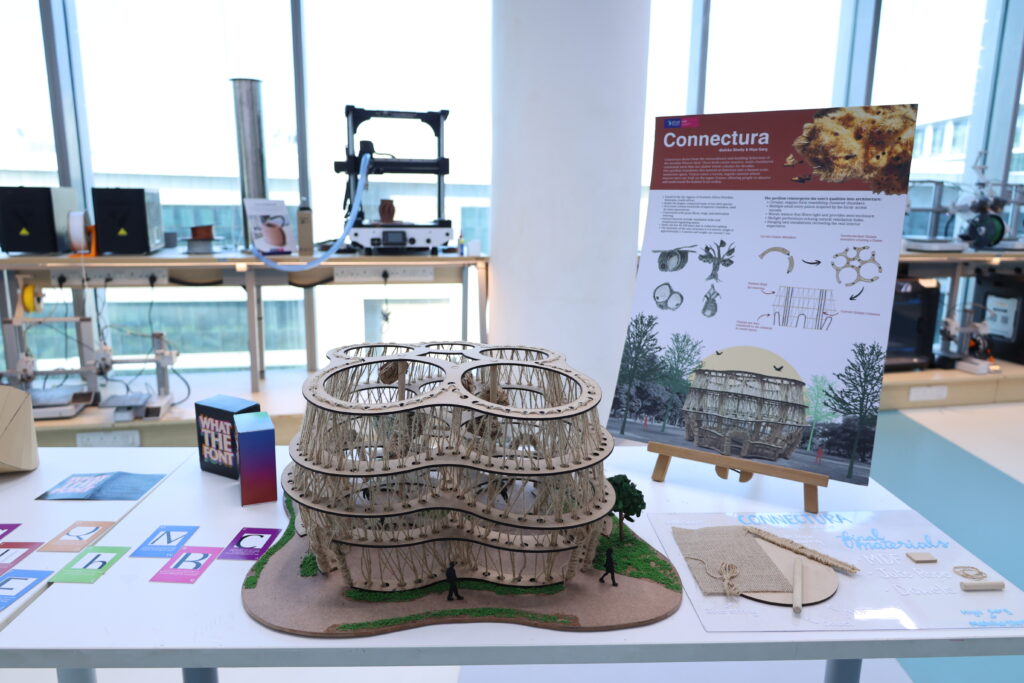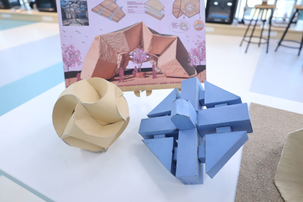 The Open Day also spotlighted students’ hands-on skills with materials such as MDF, jute rope, dowels, and file card. Visitors could see a scaled down version of the space designed and constructed entirely by students, offering a behind-the-scenes look at how ideas evolve from sketches into physical environments.