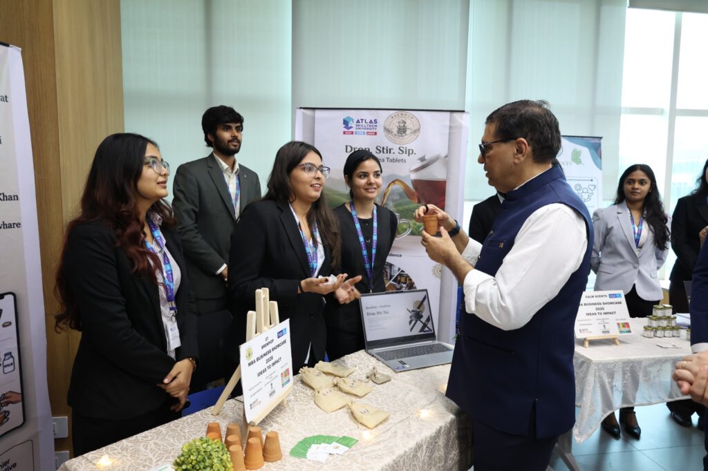 The session extended beyond dialogue. Mr. Mehta explored ATLAS’ state-of-the-art campus, interacted with student-led ventures, and reviewed innovative work across disciplines. These interactions brought a sense of validation and encouragement to students, reinforcing the real-world relevance of their ideas and efforts.