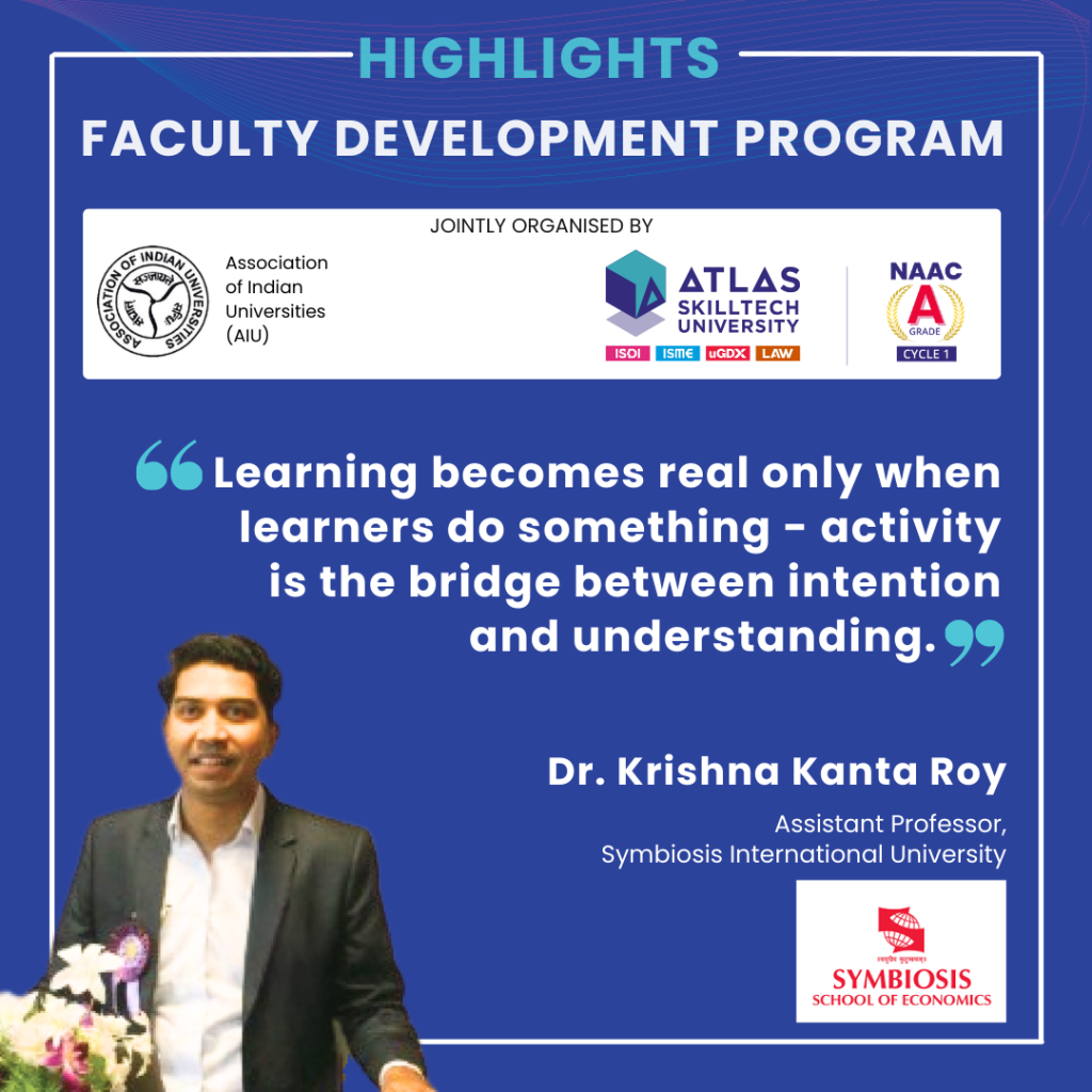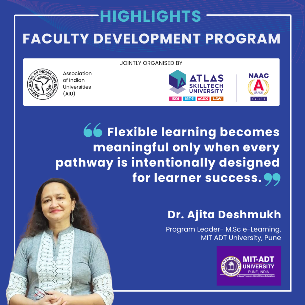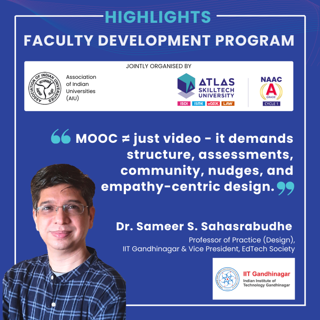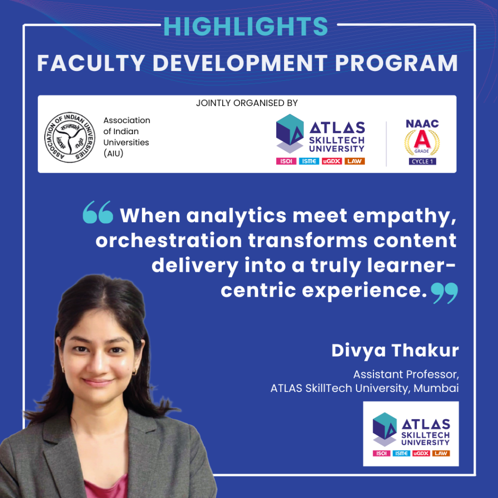 ATLAS SkillTech University, in collaboration with the Association of Indian Universities (AIU), successfully hosted a five-day Faculty Development Program (FDP) on “Pedagogy 4.0: Redefining Education with MOOCs & Digital Content Development.”