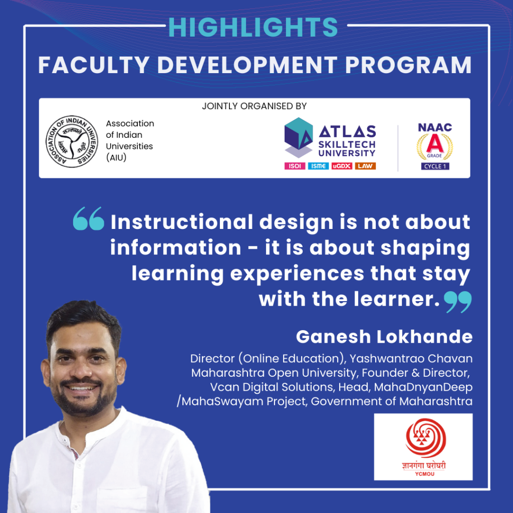 Mr. Lokhande’s core message resonated widely: “Instructional design is not about information— it is about shaping learning experiences that stay with the learner.”